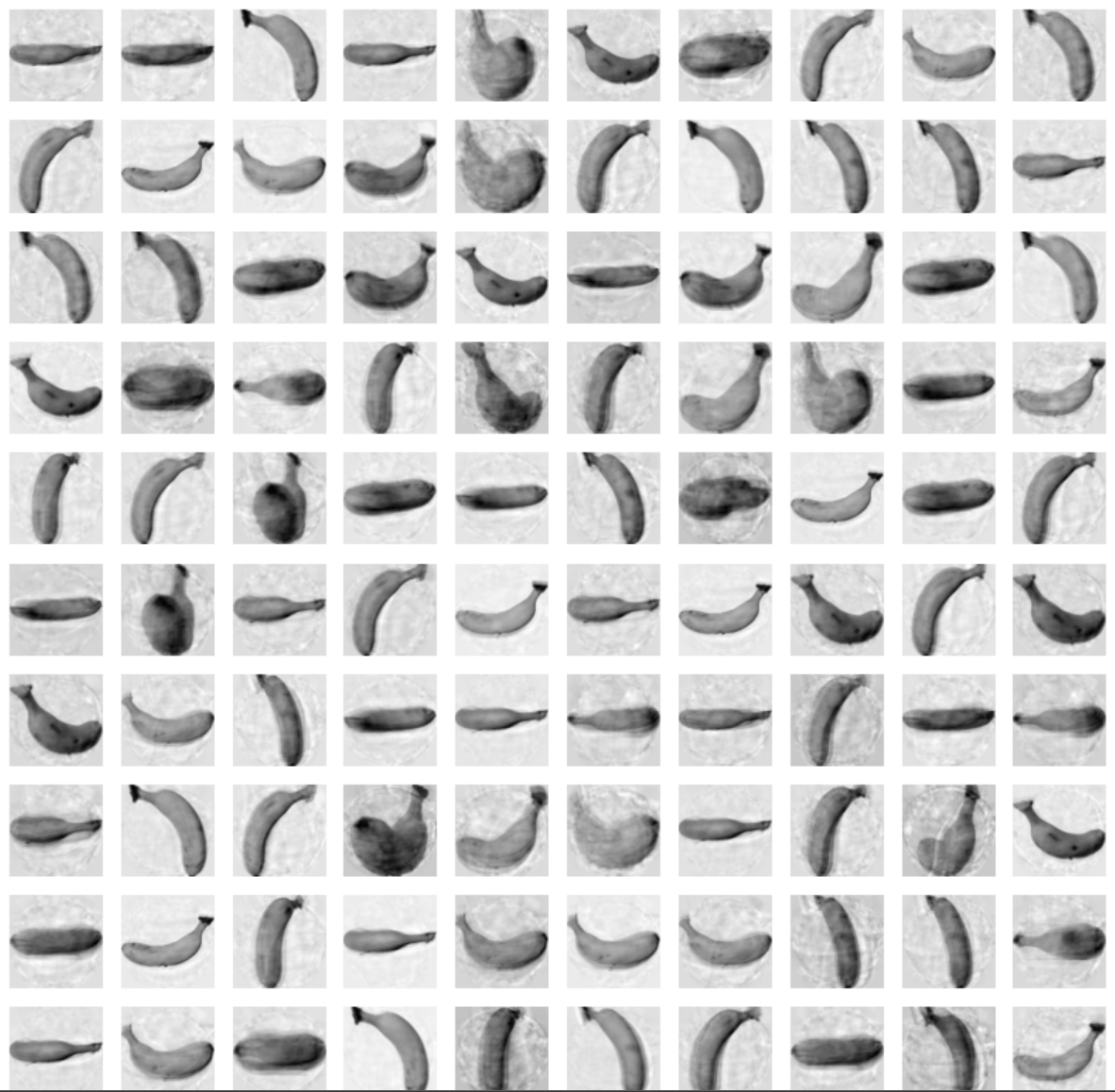 fruits_reconstruct = fruits_inverse.reshape(-1, 100, 100)