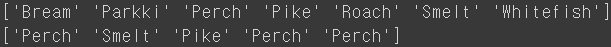 어떤 종류의 생선이 있는지 알기 위해 Species 열에서 값을 추출한다.