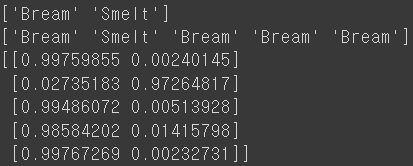 print(lr.predict_proba(train_bream_smelt[:5]))
